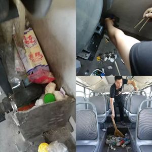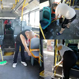 下午,路隊和分公司管理人員都來到路線,同保潔員一起清潔車廂內(nèi)外,清理衛(wèi)生死角。