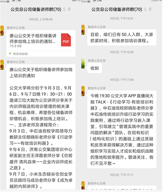 雖然直播課程占用了大家的業(yè)余時(shí)間,總公司的儲(chǔ)備講師們還是克服困難積極參與,學(xué)習(xí)氛圍濃厚,特別是在9月6日課后的互動(dòng)提問(wèn)環(huán)節(jié),主講老師共與6名公交講師互動(dòng),唐山公交的儲(chǔ)備講師占了5名,引起了公交同行業(yè)講師們的廣泛關(guān)注,給予高度評(píng)價(jià)。據(jù)悉,全國(guó)24個(gè)城市,近500名公交講師參與了此次線上培訓(xùn)活動(dòng)。